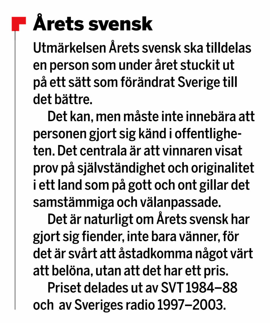 Vinnare i de övriga kategorierna av Årets svensk:
