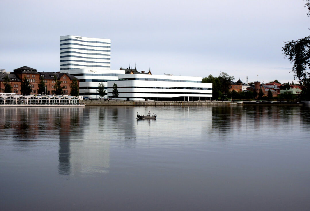 Vi dricker kaffe på Väven, Umeås kulturhus – eller ”plattform för kultur och upplevelser”, som det kallar sig självt – ett modernistiskt jättebygge av samma arkitekter som gjort sig skyldiga till Stockholms impopulära Waterfrontbyggnad. Inuti ryms allt från stadsbibliotek till restaurang. Utanför glittrar älven.