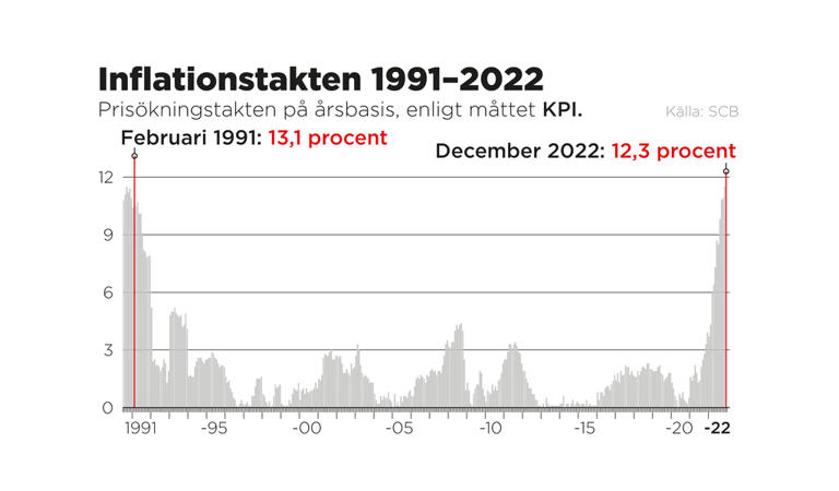 Det har varit smäll efter smäll under 2022. Avslutningsmånaden blev också en dundersmocka när inflationen enligt KPI-måttet steg till 12,3 procent på årsbasis, den högsta nivån sedan februari 1991.