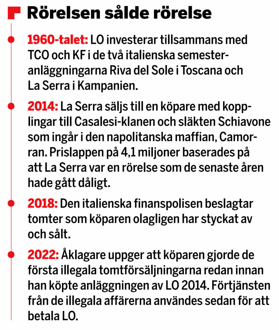 LO sålde en semesterort till italienska maffian till kraftigt underpris. Nu uppdagas att LO fick betalt med illegala pengar – efter ett Trustor-liknande upplägg.