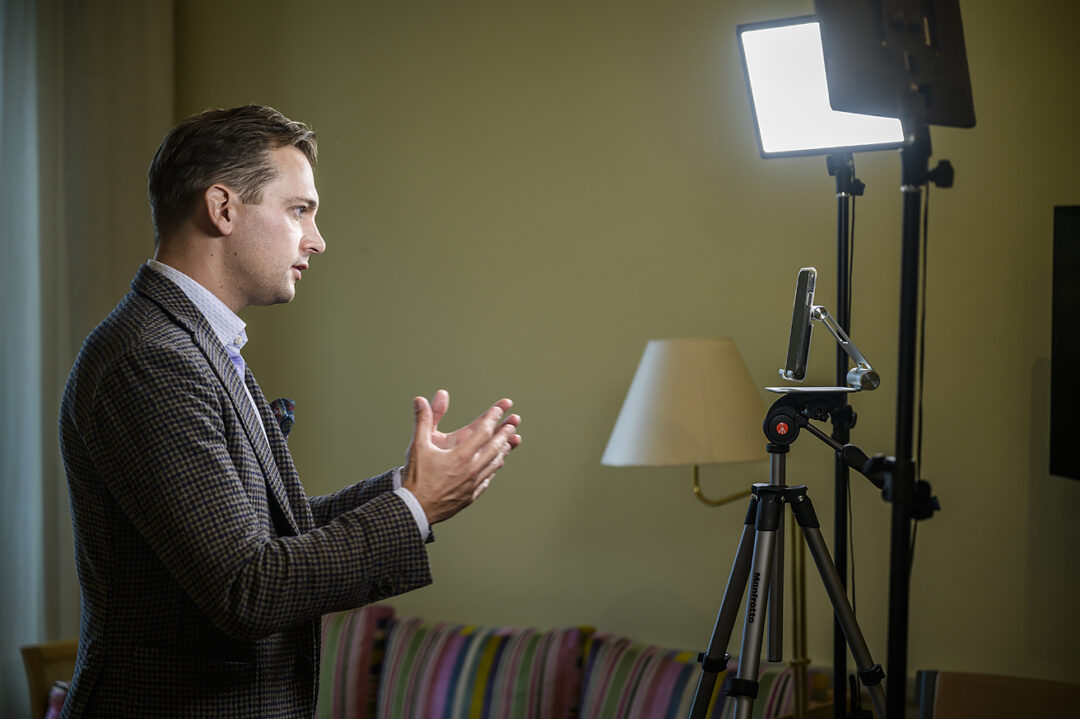Olsson Fridh knäpper ett par knappar i kavajen, ljus riggas och videosamtalet med Svenska Afghanistankommitténs generalsekreterare Andreas Stefansson startar.