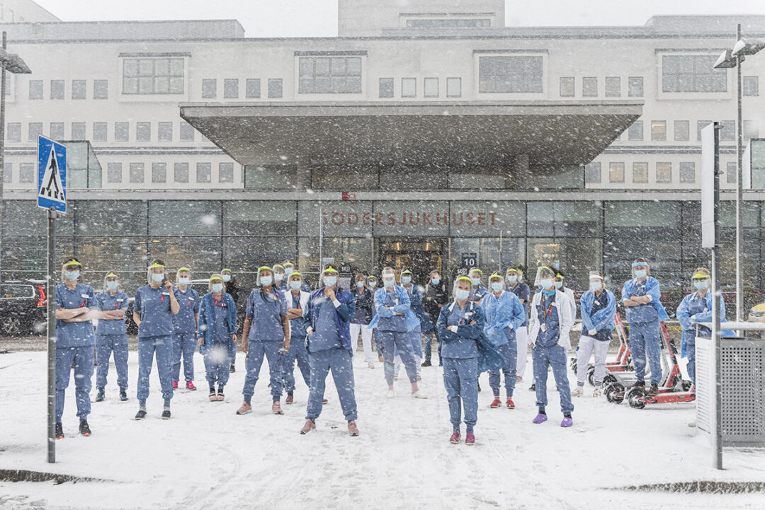 Café Florence, fiket precis innanför Sankt Görans sjukhus huvudentré, är en tummelplats för sjuka och deras besökare. Atmosfären är stukad. Ett lätt sorl stiger från havet av grå plaststolar, men de flesta äter och dricker under sammanbiten tystnad. Hanne Kjöller, med en cappuccino framför sig, gör en menande gest åt akutavdelningen, där hon själv har arbetat som sjuksköterska sedan 2020.