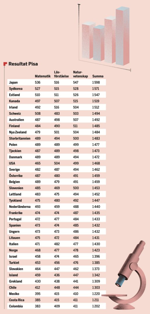 Och om man jämför svenska elever med inhemsk bakgrund med motsvarande grupper i de andra Pisa-länderna så står sig svenskarna mycket bra. År 2018 låg vi på en delad andraplats och i dag har vi visserligen sjunkit till en delad femteplats, men det innebär fortfarande en position i toppen.