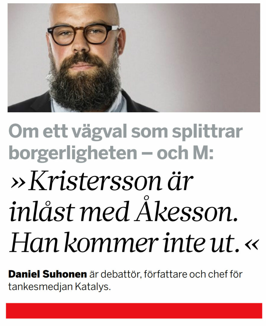 Ulf Kristersson (M) har låst in sig i samma rum som Jimmie Åkesson (SD). Nu kommer han inte ut, skriver Daniel Suhonen.