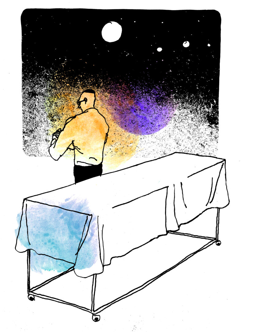 När jag har tvättat och lagt en avliden i kistan mår jag alltid bra. Det blir så tydligt att snart är det min tur att ligga på britsen – men inte just nu. Jag kickar på död, döden ger mitt liv mening. Jag är som en sådan där munk som sitter i dagar och gör en färgsprakande sand-mandala, för att i samma sekund som den är fullbordad sopa bort den. Något förändras i världen för att mandalan blev skapad, inte för att den finns.