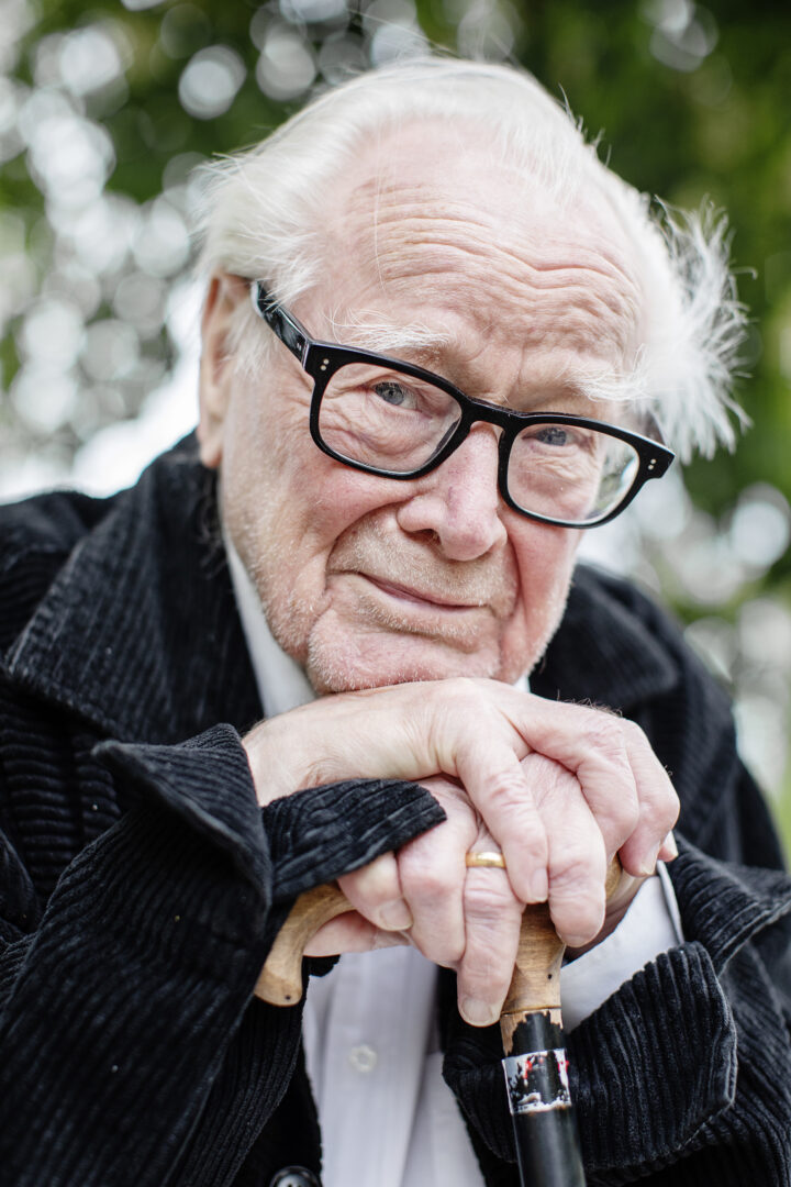 Han har just fyllt 89 år och går med käpp, stundom stapplande. Hans hår har vitnat och glesnat. Hans kinder är tunnare än för bara några år sedan, men ögonen glittrar, och rösten, rösten … visst känns det som om den åter kan bryta ut i deklamation och sång.