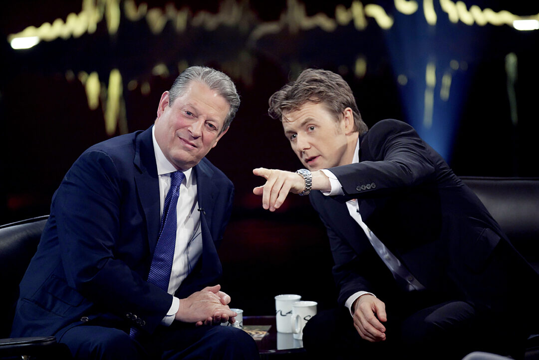 Där sitter Al Gore! I norsk prat-tv! Men Norge är ju provinsen, hur hittade Gore dit?