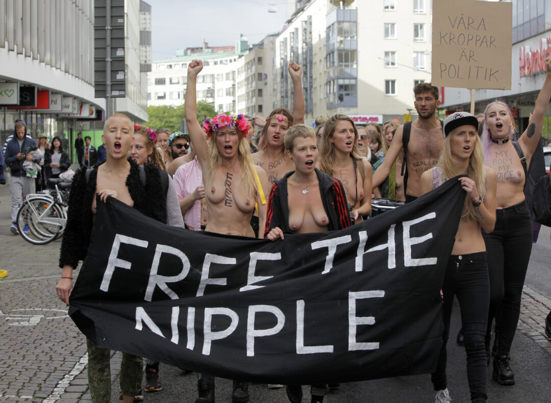 Så har det varit. Men 2008 började protestgruppen Femen från Ukraina visa brösten för att få uppmärksamhet för sitt budskap. 2012 växte sedan ”Free the nipple”-kampanjen fram i USA och Europa. Att kvinnliga bröstvårtor bannlystes på Facebook och Instagram väckte ilska, liksom att bilder på ammande kvinnor raderades. Kvinnors bröst sågs fortfarande som något laddat, något som måste döljas.