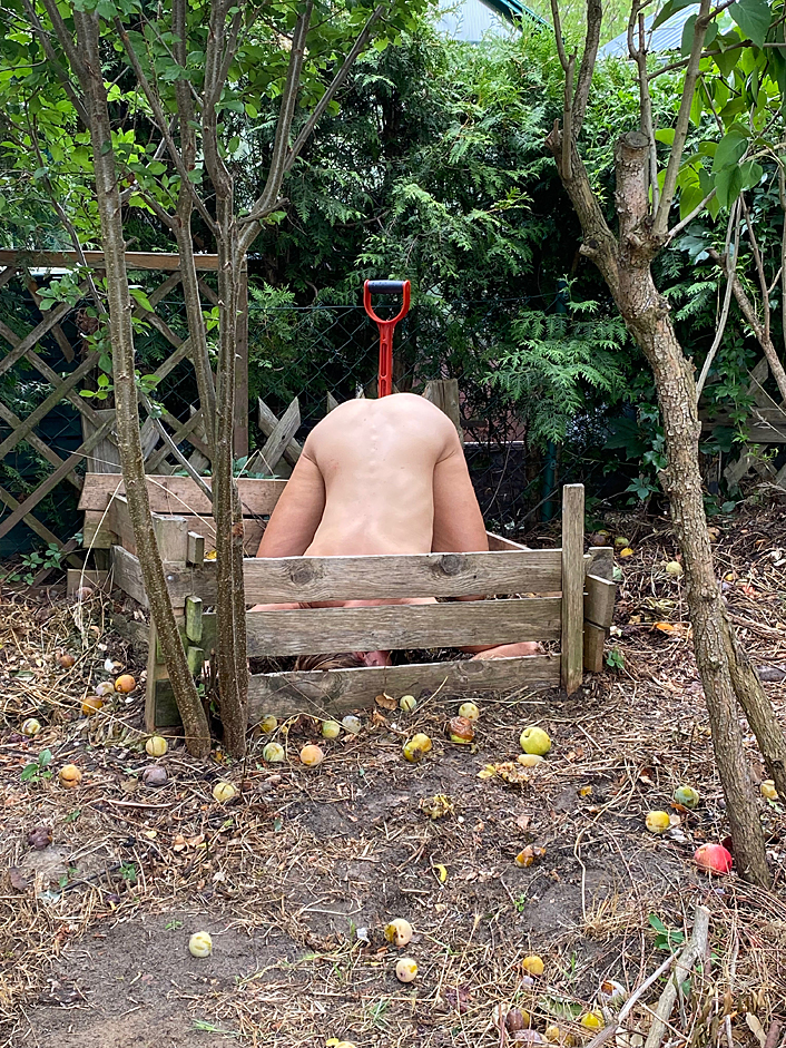 – Det är en plats där folk ska avrättas och därför finns ingen moral längre. Allt är tillåtet. Jag har jobbat mycket med ogräs och kompost, liv och död. Jag har en kolonilott och har blivit som besatt av ogräs. Jag ska göra ett parasoll av ormskinn som jag sytt ihop. Under den ska det hänga ett foto när jag är i en kompost och har en spade i röven.