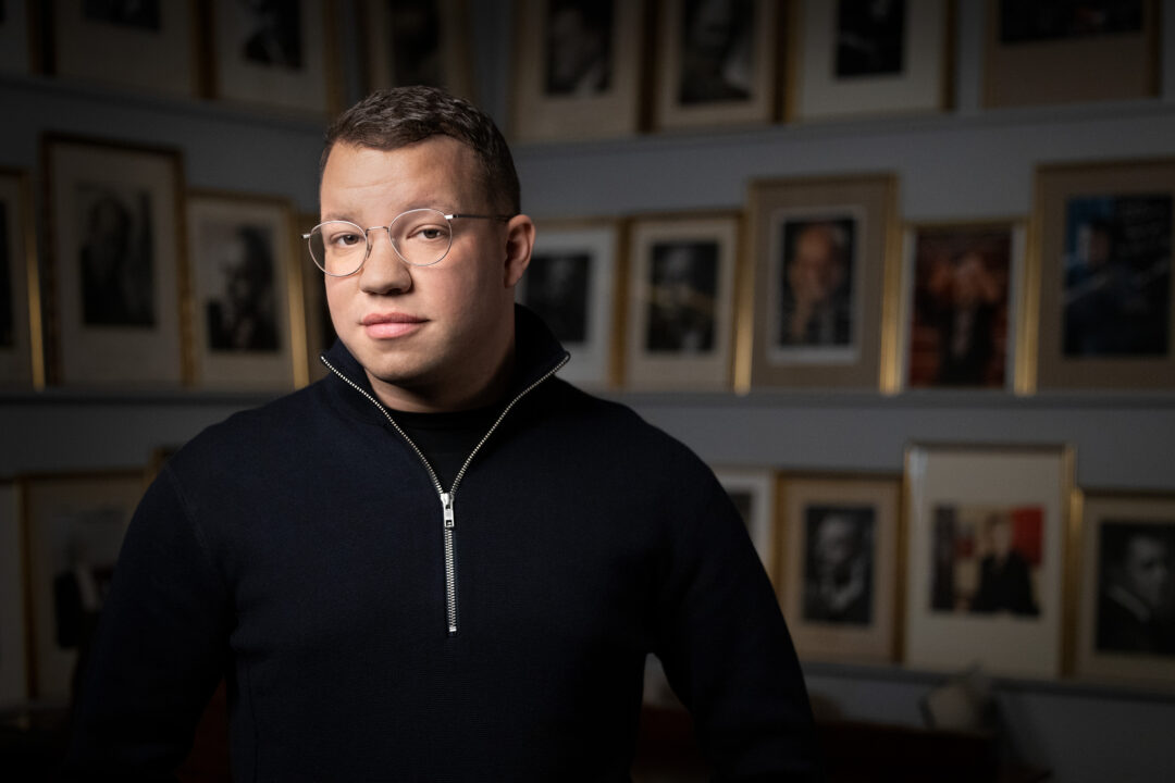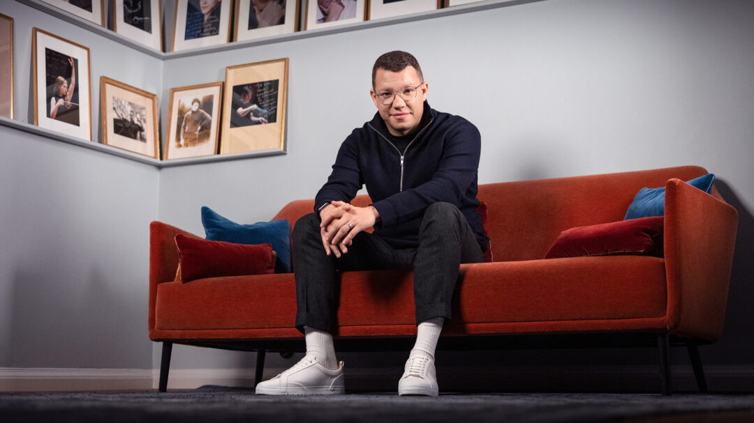 Han skrattar och lyfter illustrativt händerna över huvudet där han sitter i soffan. Från och med hösten 2023 är han Kungliga Filharmonikernas chefsdirigent. Och nej, någon diva tycks denne 33-åring inte vara.