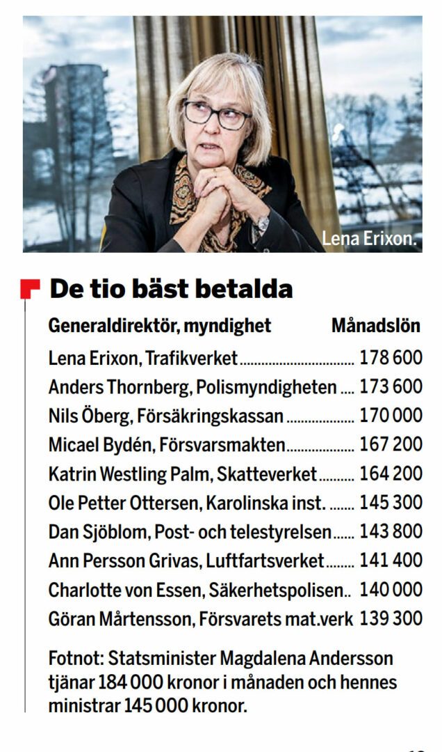 *Ombudsmän, direktörer, rikspolischef samt riksåklagare.