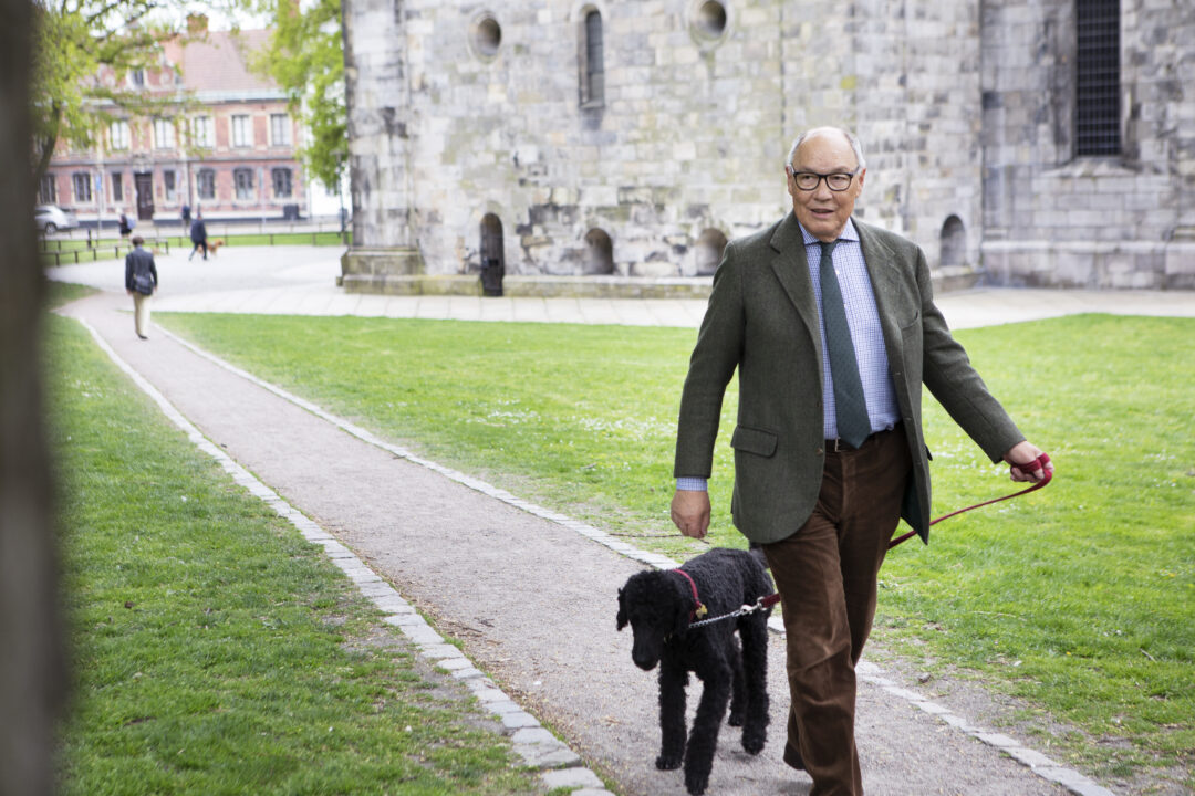 Jag hittar Germund Hesslow på John Scott’s pub i Lund med en öl och en kungspudel.