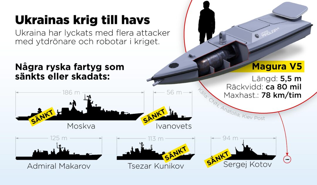 Men på liknande sätt kan förstås ryssarna själva bygga ytdrönare som kan anfalla fiendefartyg.