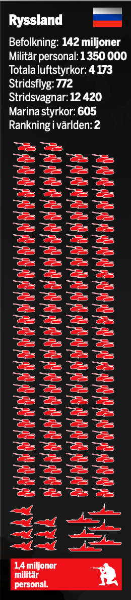 Ändå är en väpnad konflikt mellan europeiska styrkor och Ryssland inte otänkbar. Putin har hotat länder som stödjer Ukraina med vapenleveranser att de ”kommer att hållas ansvariga” om vapnen används mot ryska soldater. Ekonomiska sanktioner anser den ryska presidenten är en krigsförklaring. Vad skulle hända om Europa dras in i ett storkrig mot Ryssland? Hur skulle de europeiska stridskrafterna mäta sig mot de ryska?