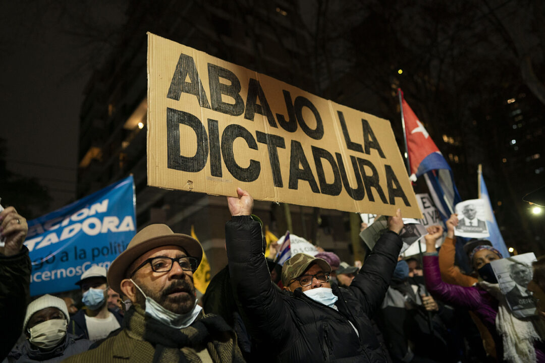 Argentina. Juli 2021: Protester i Buenos Aires mot kommunistregimen på Kuba.
