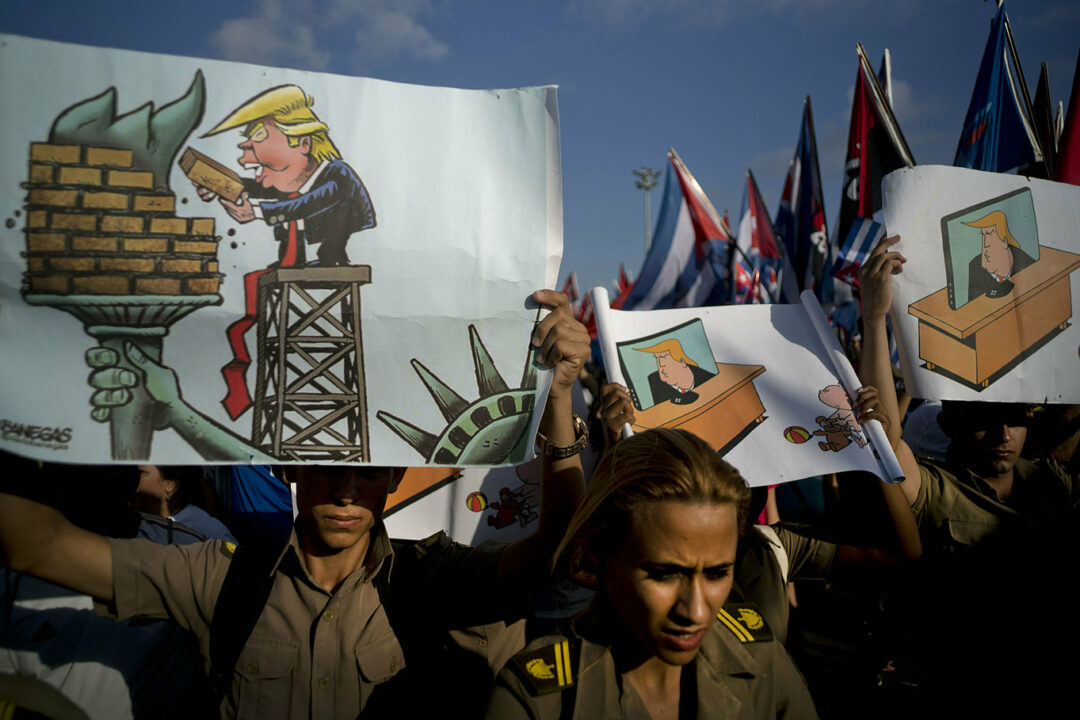 Kuba. Maj 2019: Kubanska soldater protesterar i Havanna mot USA:s dåvarande president Donald Trump.