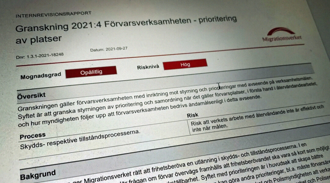 ”Det är inte någon idé att fatta förvarsbeslut eftersom de ändå inte verkställs”, säger en av de intervjuade i rapporten och internrevisorerna konstaterar att: ”Förvar framstår inte som ett tillgängligt verktyg för Migrationsverkets återvändandearbete”.