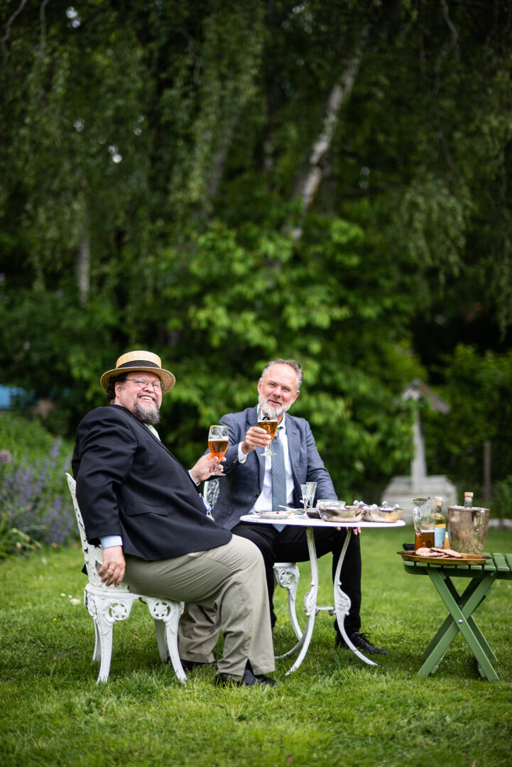 – Högtidsmåltiderna fick som sagt också en allt större popularitet tack vare nationalromantiska sekelskifteskonstnärer som Carl Larsson och Anders Zorn. Jag tycker vi skålar för dem, säger Edward Blom och häller upp nästa snaps: En björkkryddad OP Anderson.