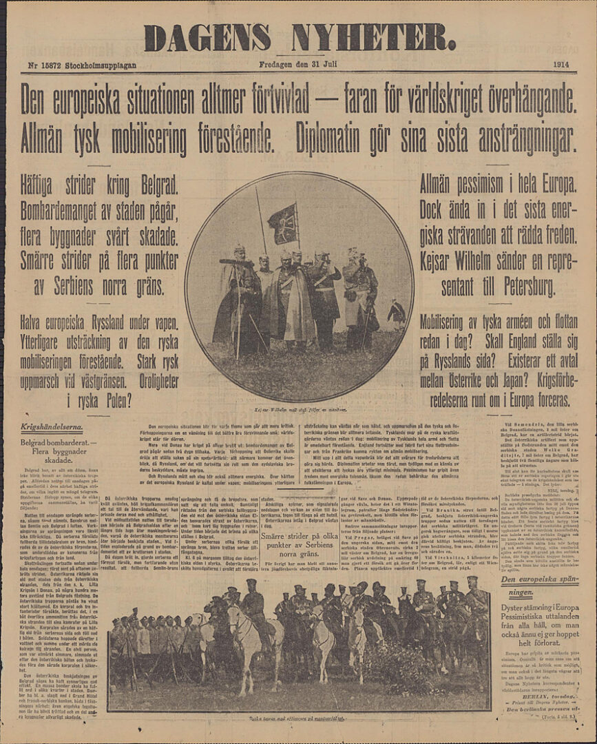 Samma dag dök några löjtnanter upp på Dagens Nyheters redaktion vid Tegelbacken. Där brukade de aldrig visa sig annars. Men nu ville de ”tala en stund om utsikterna för världskriget”. Det var ”ett ämne som i hög grad intresserade dem, eftersom det berör deras yrke och eventuellt kan ge dem tillfällighet att visa vad de lärt sig av militär sakkunskap”.