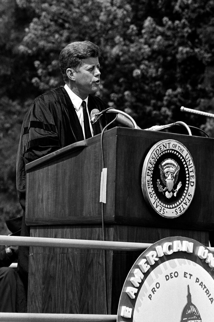 Bobby Kennedy hänvisar ofta till sin farbrors ”fredstal” på American University den 10 juni 1963. Det var förvånansvärt försonligt för att vara under kalla kriget. JFK värjde sig mot en ”pax Americana”, framtvingad av en överlägsen amerikansk militärmakt. Robert junior säger sig på samma sätt sträva efter att ge USA en mindre interventionistisk roll i världen och försöka hålla USA utanför krig. År 2024 handlar det framför allt om kriget i Ukraina. Han förordar en diplomatiskt lösning och vill avbryta det massiva militära stödet till Kiev.