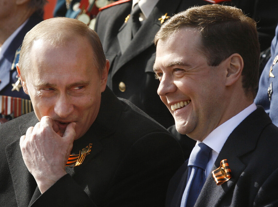 Dmitrij Medvedev utser Putin till regeringschef, och i nästan alla sammanhang talar om deras ”tandemstyre”. I själva verket är det ganska tydligt att det är Putin som både styr och trampar alldeles själv. Medvedev sitter knappt på cykeln, men väcker uppmärksamhet med ett intresse för tekniska gadgets och någorlunda modern musik – Medvedev visade sig vara ett fan av brittiska rockgruppen Deep Purple, och han ståtade tidigt med både iPhone och iPad. Hans musiksmak och teknikintresse ledde till att många utomlands drog slutsatsen att Ryssland nu leddes av en ung liberal.