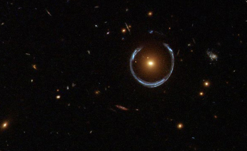 Runt en stor stjärna kröks rummet så vi kan se en stjärna som ligger bakom den stora stjärnan (som egentligen borde täcka den). Stjärnan där bakom syns då som en ring runt den första. Ljuset har böjts av. Det här fenomenet kallas för Einstein-ring. Jag rekommenderar läsaren att googla »Einstein ring« och njuta av bilder på ett spännande astronomiskt fenomen.